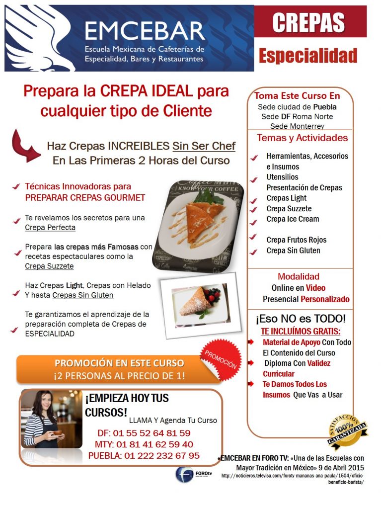EMCEBAR le ofrece este curso de Crepas Gourmet, el cual contiene las características que le presentamos a continuación: